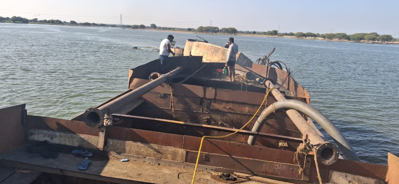 जिला प्रशासन ने की बडी कार्यवाही डूब क्षेत्र से अवैध रैती उत्खनन करते पांच बडी एवं 3 छोटी नावे जप्त